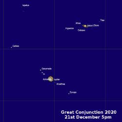The great conjunction of 2020 will be the closest since 1623. It will occur seven weeks after the heliocentric conjunction, when Jupiter and Saturn shared the same heliocentric longitude. On 21 December at 13:30 UT, Jupiter will be 0.1° south of Saturn and 30° east of the Sun, meaning both planets will be visible in the same telescopic field of view (though they will be distinguishable from each other without optical aid). The two planets will be visible low above the southwestern horizon in the constellation of Capricornus after sunset. From mid-northern latitudes, the planets will be less than 15° in altitude, one hour after sunset.