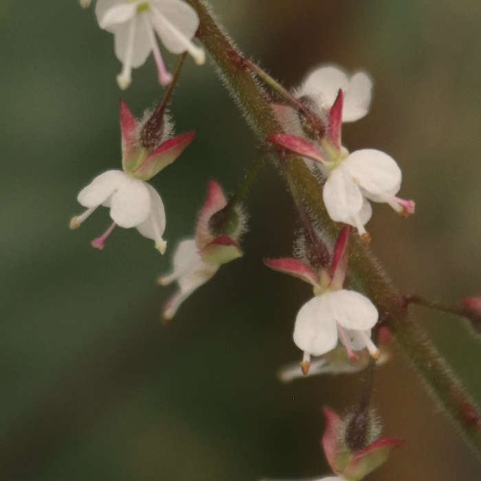 Devon Wildlife Trust Enchanter's nightshade is hairy plant that is actually a member of the willowherb family, rather than being related to deadly nightshade. It can be found in woodlands, hedgerows, gardens and even at the foot of old walls; it especially likes heavy, rich soils. It bears loose clusters of tiny, pinky-white flowers from June to August