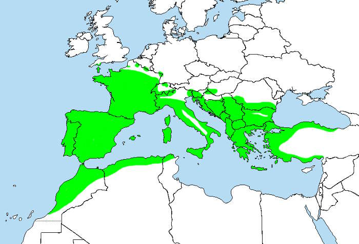 It breeds across southern Europe, on the Mediterranean islands and in north Africa. It is a resident of these warmer areas, and does not migrate in winter. It is common in all sorts of open areas with some scrub or trees, but has a preference for sunny slopes.