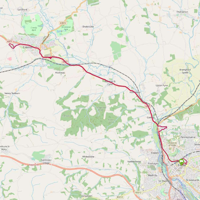 Exeter Bus Station - Duryard West Garth Road top (N-bound) - Newton St Cyres, opp Crown and Sceptre - Crediton Lloyds Bank (W-bound) - Crediton Westernlea (opp 94)